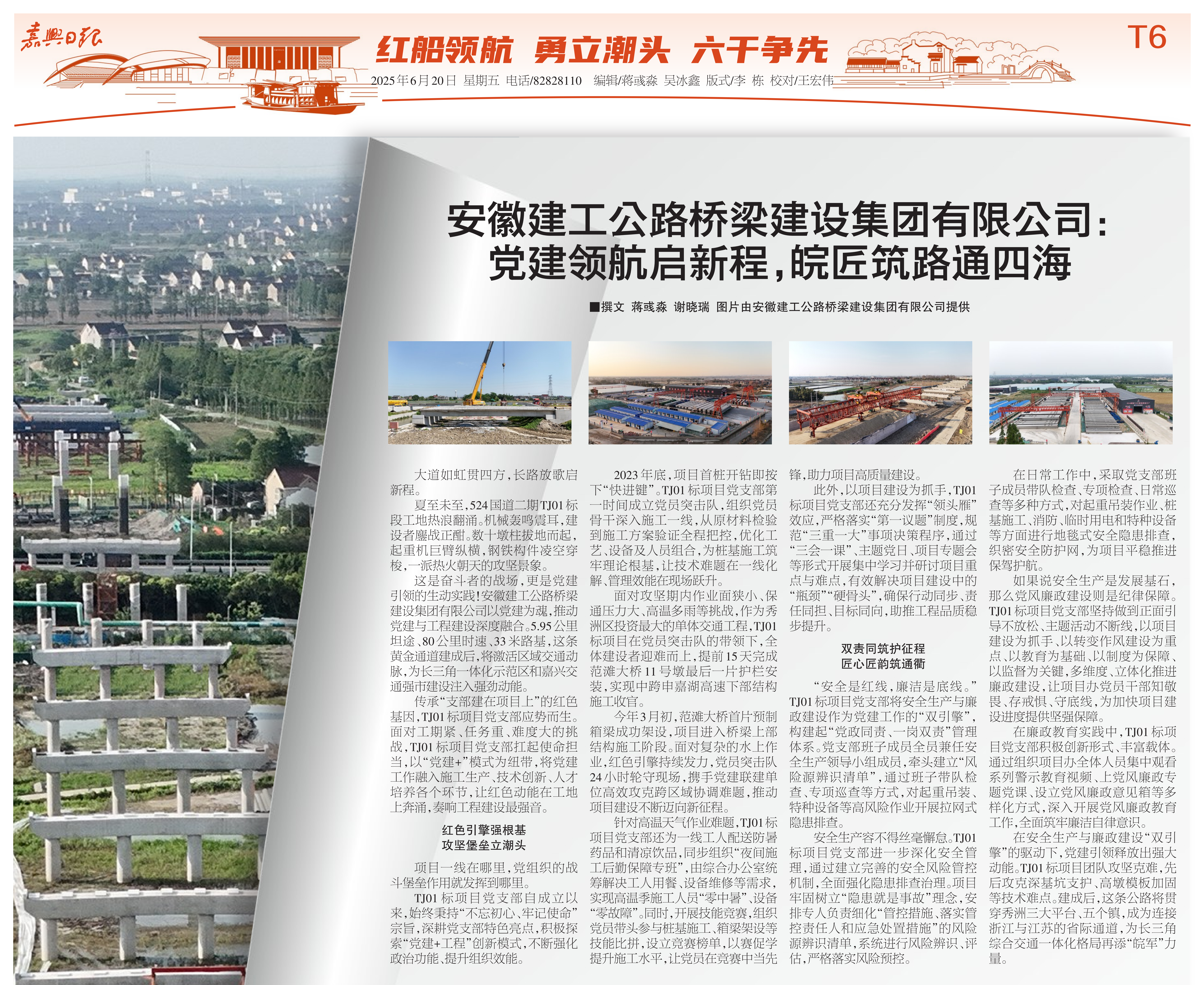 【名媒聚焦】嘉興日報:安徽建工公路橋梁建設(shè)集團有限公司——黨建領(lǐng)航啟新程,皖匠筑路通四海