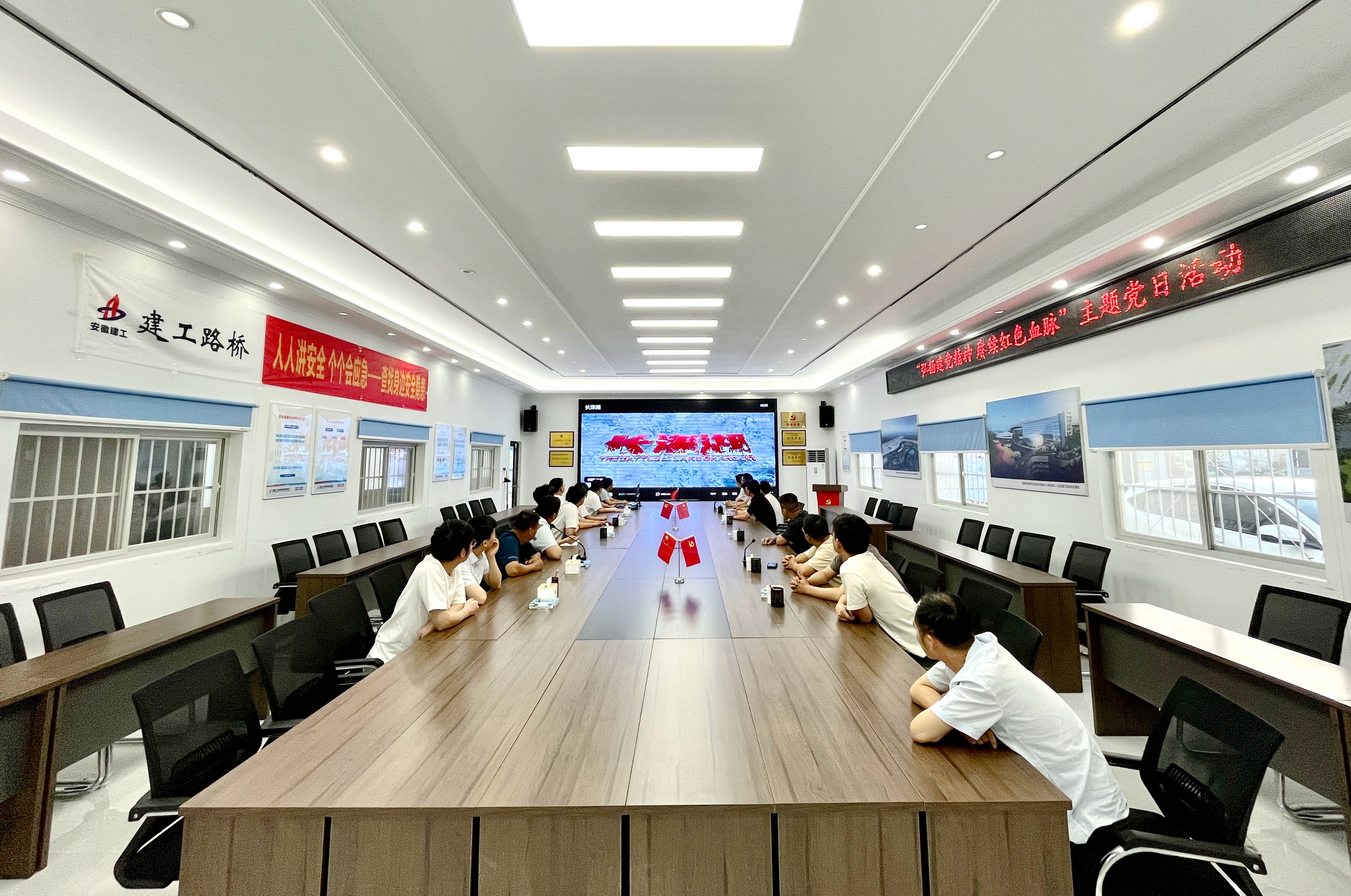 6月30日,合肥新橋國(guó)際機(jī)場(chǎng)綜合交通中心項(xiàng)目黨支部開(kāi)展“弘揚(yáng)建黨精神 賡續(xù)紅色血脈”主題黨日活動(dòng),組織全體在崗員工觀看電影《長(zhǎng)津湖》,激勵(lì)全體職工以革命先烈為榜樣,以實(shí)際行動(dòng)賡續(xù)紅色血脈,為項(xiàng)目高質(zhì)量發(fā)展貢獻(xiàn)力量。觀影結(jié)束后,全體黨員重溫入黨誓詞。