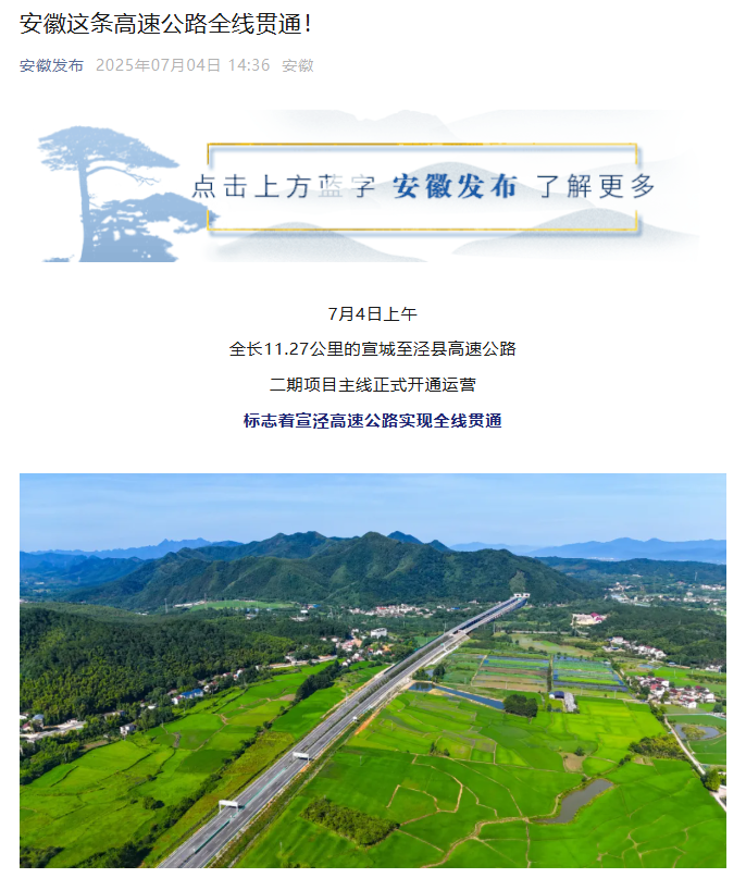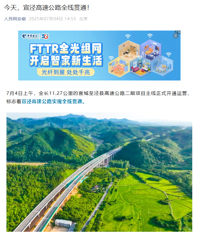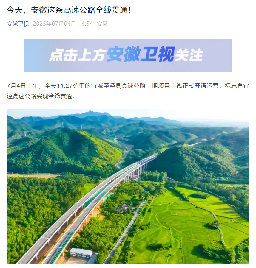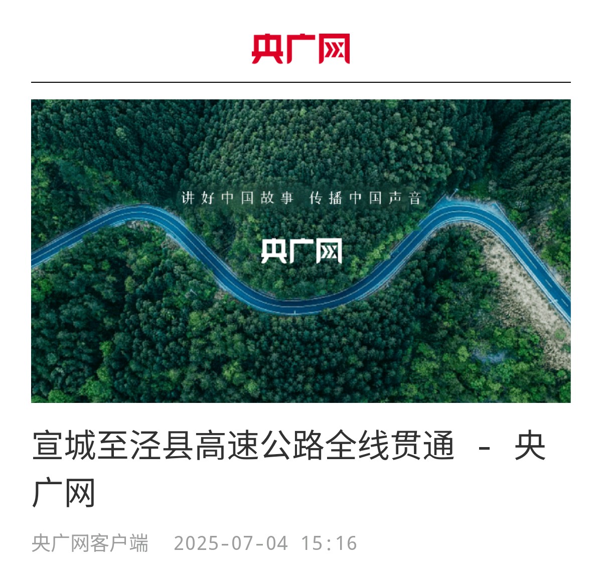 宣城?涇縣 公司參建的這條高速公路通車放行 人民網(wǎng)、央廣網(wǎng)等多家媒體關(guān)注報道