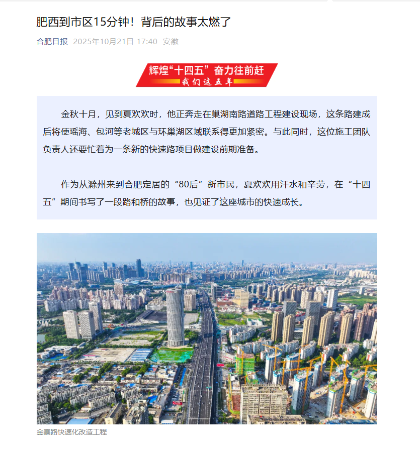 【名媒聚焦】合肥日報:輝煌“十四五” 奮力往前趕系列報道——肥西到市區(qū)15分鐘!背后的故事太燃了