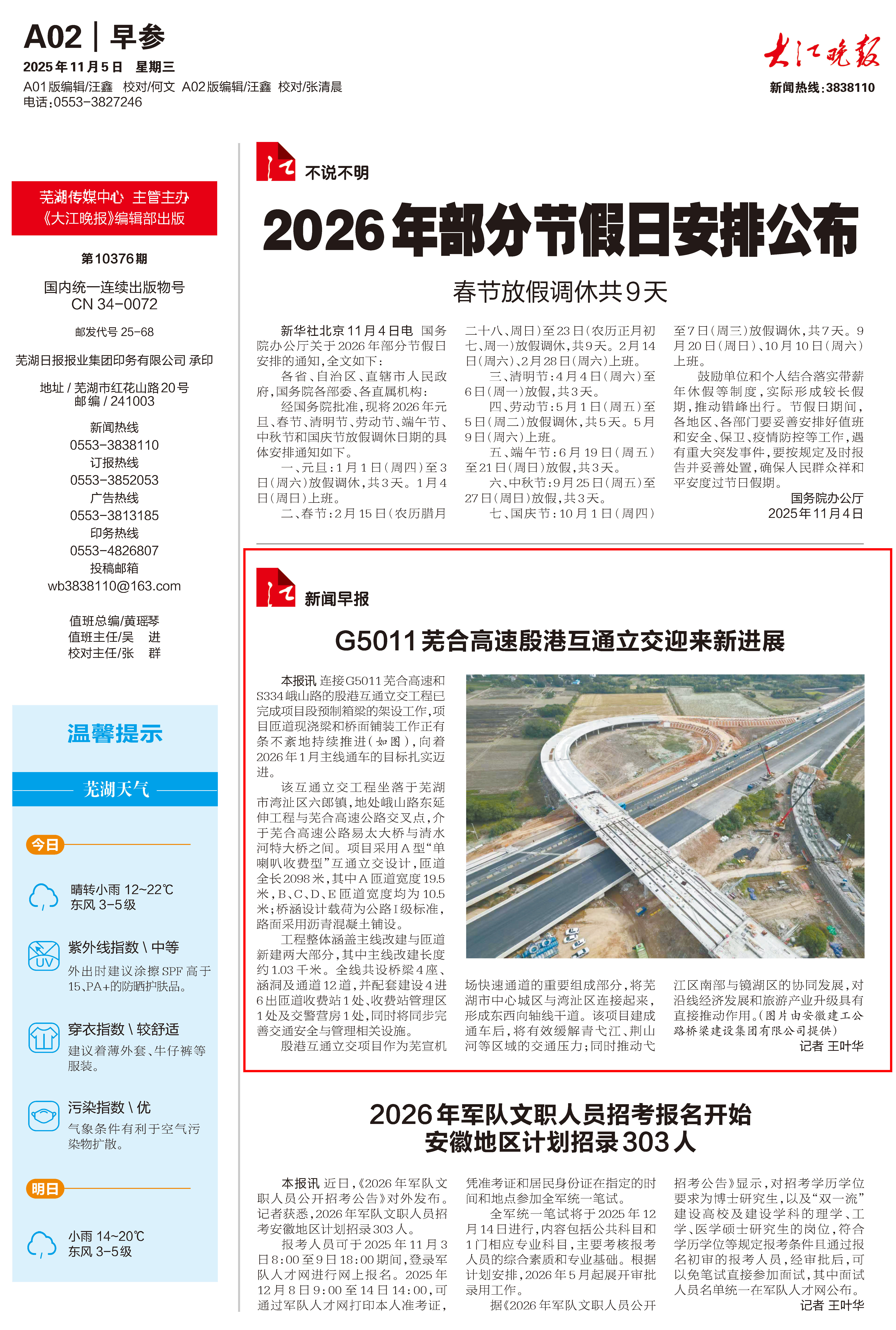 【名媒聚焦】大江晚報(bào)、蕪湖新聞網(wǎng):G5011蕪合高速殷港互通立交迎來新進(jìn)展